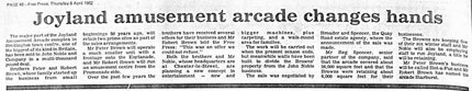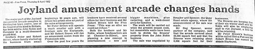 that Joyland had been sold by the Brown family to J Noble & Sons