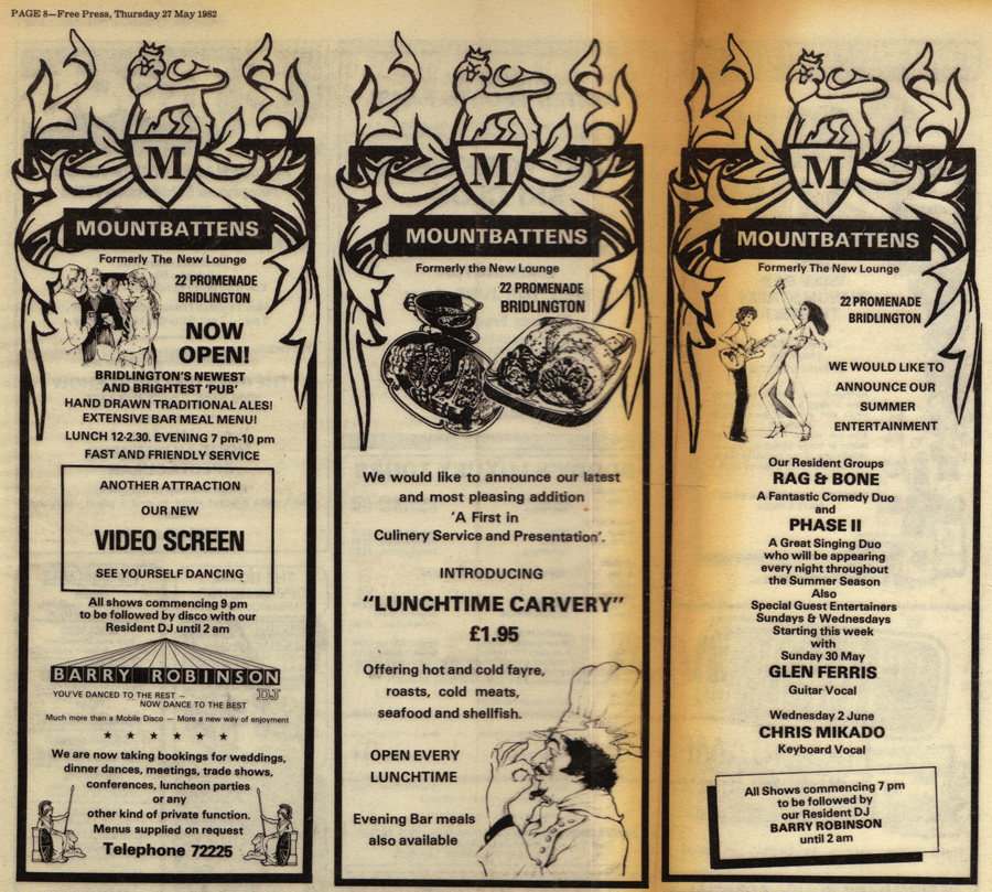 Page 3 The Lounge enters the age of the multi-leisure complex and the discotheque by Wes Walker THE BRAND AND THE LAUNCH Arriving at the new identity of 'Mountbattens' was the simplest aspect. Since a boy, Brian Walker had admired the Last Viceroy immensely. After his assassination shocked the world in 1979 – during these preparations – a crestfallen Brian was immediately certain that it was to be his way of doffing a topper to the brave last Viceroy. The Earl had fought in the world wars besides presence in other conflicts, and had similar appetite for hard work, but the decision was particularly for his anti-communist stance (fully revealed by Freedom of Information in 2007) when the Earl and assembled heads had mobilised private armies as a show of force against Harold Wilson’s premiership (suspected of Soviet links) in 1976, and of retaliation against decline of law and order. The Earl was still immensely popular and remembered across the lands, even by the time the Walkers were immersed in trying to develop some of the former British defences on Malta in 1991. It didn’t want to be a shrine or museum, but it had to be a worthy tribute with utmost accuracy. Anything they needed to know could be checked with Broadlands, the family’s stately home headquarters. (Each piece that would be sent up from their archives was marked with a ‘Broadlands Archives’ oval). Any flavour required for the colonial elements was at hand; Elizabeth Walker’s maternal side had been born and raised in India in the shadow of Lord Willingdon’s Viceroyalty. Many of the adornments were overtly expensive: Broadlands sanctioned for prints to be made from Carlos Sancha’s full-length depiction, and of Bern Schwartz’s magnificent photographic portrait of the Earl’s front-lit right profile. Since the Earl was no longer around and since Brian wasn’t deluded enough to imagine he’d have posed for an impression to be taken had he been, these pictures became invaluable in Walkers Tussauds creating a bust, of which two casts were made. (One was given to Broadlands; heaven knows what happened to the other. Further wax representations of Earl Mountbatten, with costume accuracy, were also derived from these sources for display in a variety of attractions over the ensuing years.) The Royal Mountbatten Coat of Arms could never have been sanctioned for independent commercial use under any circumstances, so a new ‘Mountbattens’ crest was commissioned. On top of more obvious accoutrements as glasses, printed napkins, carriers and posters, the emblem would also be employed in the special casting of the chair-backs, the enamelling of china, and in the weave of thousands of square feet of carpet. Postcards were marked, “You write the message and address – we will stamp and post.” A second commissioned (in-keeping) motif was of an enthroned Boadicea, employed for stone/plaster Acroterion at points through the building, and also again as component to the marketing. All of this would afford the surrounds a wonderful, breezy Romanesque air, then deemed out of fashion though continuing to be reintroduced afresh. (Romanesque was the first thing the Noble brothers adopted in the subsequent era; they went about reinstalling all the trappings, and are to be commended for it.) It would allow for secondary themes, that would normally clash with any alternation, to be comfortably accommodated. However, the lowering of ceilings across the ground level, to attain an ambience of intimacy, obscured much of the opulence and décor finery. Though lowered (as they were also being in adjacent Joyland), they were still substantially high: 12ft at their lowest point but creating a cavity to install a heavy air-conditioning system. In progress from 1980, the scheme had been deemed manageable if conducted in phases, and although he drew no remuneration from aiding his father’s businesses, Brian Walker was still dividing his time between his own enterprises and some of the care and course of the amusements. His brothers had worked under their father, but since Brian had first gone into embryonic business in 1967, the five-years-older Kenneth had started efforts to make up time. In the late seventies the latter had bought the Ocean Club on the coastal headland at Sea Farm (which attracted some star turns in its time), and another called Sandancers, which apparently had eastern elements to its flavour. The combination here was of a large club, long bar and eatery. From these emanated a new proposal, culminating in the 1981 launch of The Mascotte House Country Club further down the coast at a Mere, another example of diversification within the show-business, opened to offer a more sedate atmosphere. But for their lifetime the two brothers were of diametrically opposed natures. The premature death of their mother Joan Walker on the launch date of The Palladium Cellars in 1980 had singularly provided the first opportunity for the two to close distances and to try and form a marriage of the ways. From the fall of 1981 two of Brian’s brothers came in, to operate the bars, discotheque and restaurants. In his turn of gesture, Brian Walker had already supported Mascotte House’s formative period by producing events there. It wasn’t until the New Year of 1982, during early preparation for the season’s set start of April, that the new identity was first fully unveiled as The ‘Mountbattens Nightclub & Restaurant’ complex, upon which time (the first of February) Walker’s two brothers, Kenneth & Charles (the latter of a later generation), were named as licensees. Charles, whose 21st birthday celebration was the event used to introduce the place to the legions in the show industry, became a member of the resident band. (Appropriately in the very same mid-March week of 1982, the Nobles advanced to subsume Joyland). Kenneth arranged remaining finances from lenders, such as the requirement of underwriting a large loan from lead