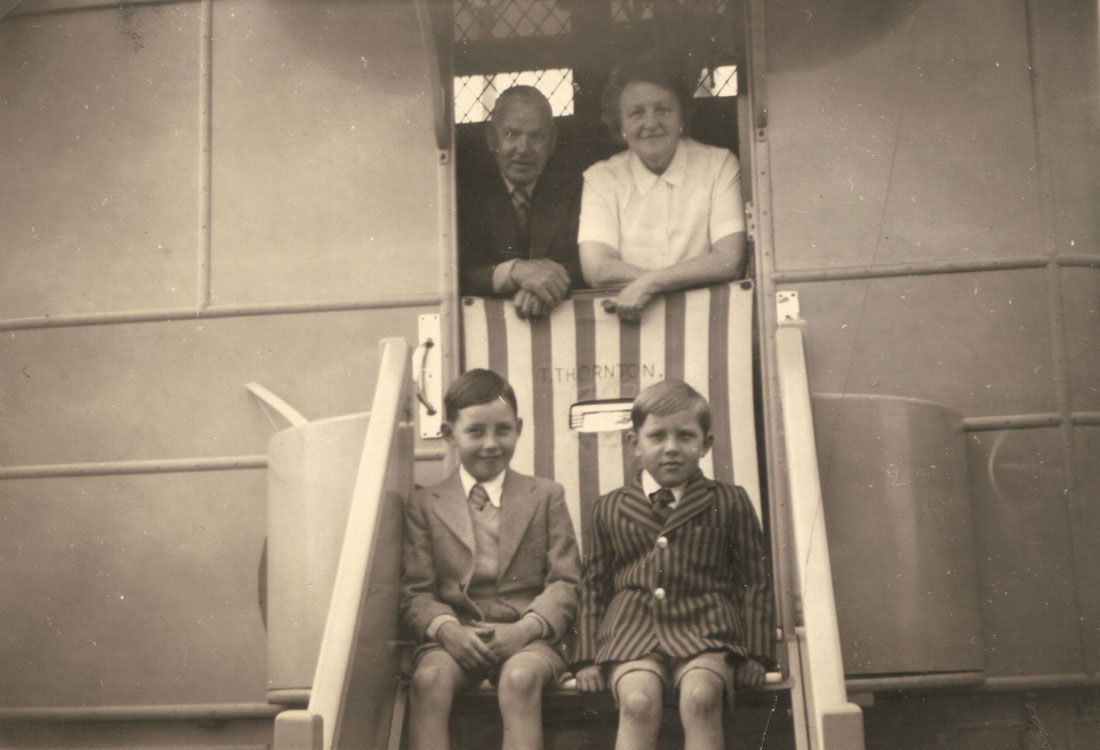 Tussauds founder Brian Walker as an infant, sat on the steps of his